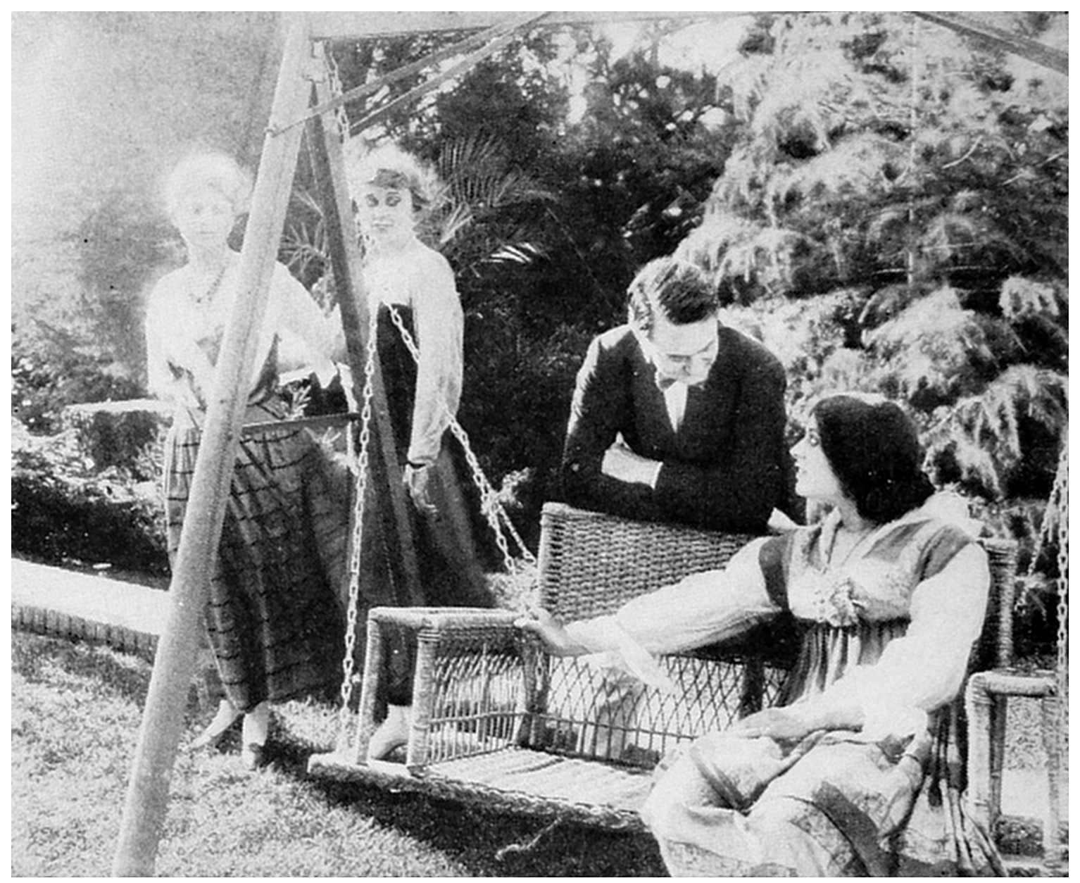 In thus advocating a new art of cinema landscape gardening we do not mean to imply that nature untouched is not full of beauty. We know well enough that the rhythm of line in the horizon of a rolling country, or in the lights and shadows of trees massed in the distance is often a delight to the beholder. But natural beauty of that sort is admissible to a cinema composition only when it is itself the dramatic theme of the story, and can be emphasized by the introduction of human figures or other elements, or when it can be subordinated to something else which is the dramatic theme. If nature cannot be thus composed she may still be photographed by the maker of scenics, travel pictures, etc., but she is of no practical value to the director of photoplays.