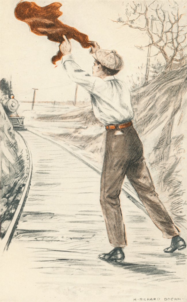 “Well, much obliged, Kid,” said “Toots” lazily. “That was a bully treat. I’ll stand you some day. I must waddle home to dinner now. Gee, but I’m full! Well, see you later. Don’t forget the signal; like this; see?”
