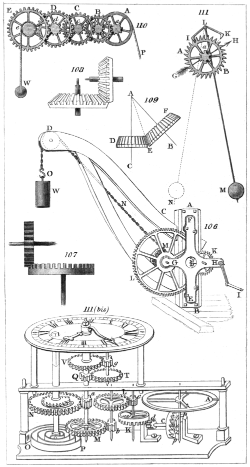 | Division of Motion into rectilinear and rotatory.—Continued and reciprocating.—Examples.—Flowing Water.—Wind.—Animal Motion.—Falling of a Body.—Syringe-Pump.—Hammer.—Steam-Engine.—Fulling Mill.—Rose-Engine.—Apparatus of Zureda.—Leupold’s Application of it.—Hooke’s universal Joint.—Circular and alternate Motion.—Examples.—Watt’s Methods of connecting the Motion of the Piston with that of the Beam.—Parallel Motion. | |