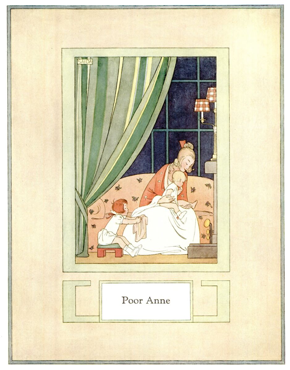 One day Mrs. Dewpond was not very well; and then there were more days when she was no better; and first a doctor came, and then a nurse came, and then she and the nurse went away into the country together to see if that would do her any good. And all the time Mr. Dewpond went about the house saying “T’chk, t’chk, t’chk” to himself, and looking very miserable; and Anne Mary wrote to her Mother every day to say that they were all getting on all right and did want her back so badly; and Terry ended up her prayers every night with, “And may she suddenly come back to-morrow morning about half past seven, so that I can wake up and there she is”; and George kissed the door of her Mother’s empty bedroom every time she passed it, as{95} a sort of friendly habit; and all the house called to her to come back to it.