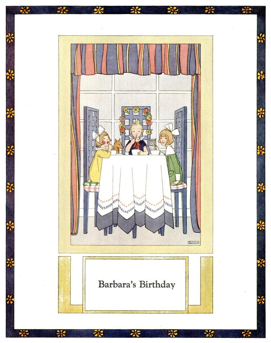 And Helen and Susan and Henry Dog and Mrs. Perkins thought it was a lovely tea. But all the time Barbara was saying to herself, “Only three more days, and then I shall have my real birthday.{73}”