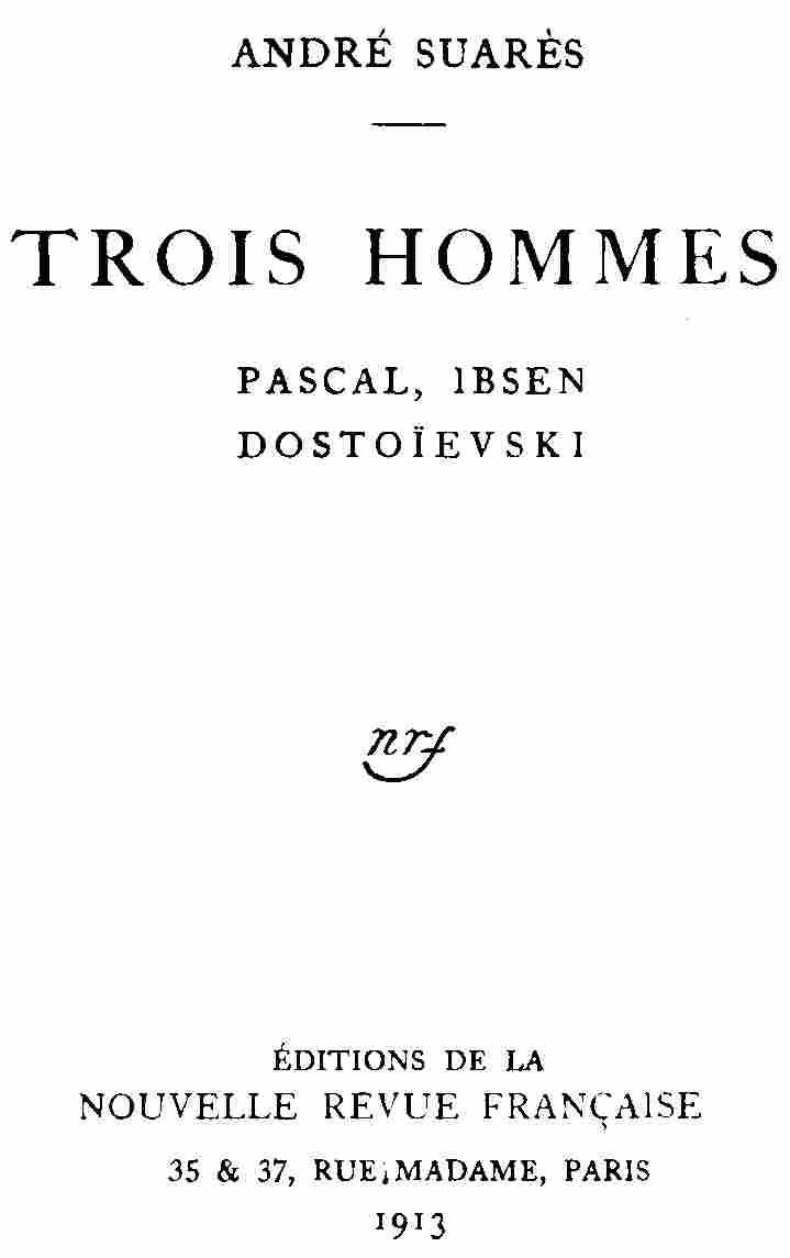 «Il faut à Pascal une certitude. Et il me la faut comme à lui. A défaut de ce qui est certain, je ne vois point le doute, mais le vide. Ce qui n'est pas—n'est point. Je ne le nomme pas ce qui peut être. Je préfère une certitude horrible, faite d'abîmes et de négations, à vos demi-vérités, toutes faites d'affirmations contraires, qui se détruisent et qui ne sont que des doutes honteux, ou si médiocres qu'ils ne se savent même pas douteux.