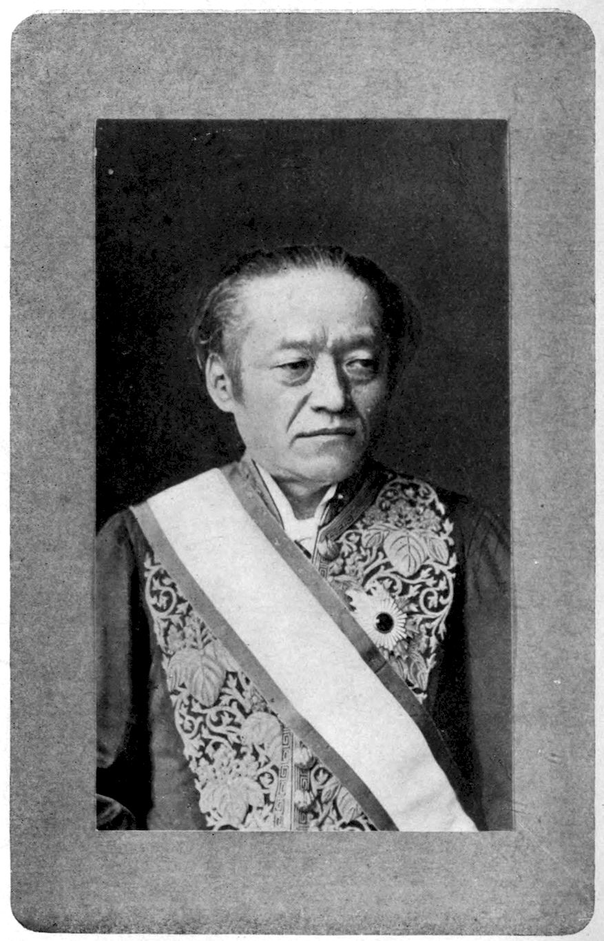 What Japanese writers tell us of the relations subsisting between the Court at Kiōto and the Yedo administration brings out very clearly the fact that the Kugé or Court nobles, who had in former days governed the country, never ceased to regard the Shōguns as usurpers, the Capital serving as the focus of constant intrigues directed against the Government of the day. It was only natural, therefore, that the Imperialist movement should find strong support at Kiōto, and that the men who undertook the delicate and dangerous project of uniting the southern clans in organized resistance to the Shōgunate should be in a position to vouch for the secret approval of the Throne, whose formal sanction recorded in State edicts remained to the last days of Tokugawa rule one of the few shreds of prestige still left to the Sovereign. Though the Kugé, as a body, having long been excluded from active participation in public affairs, were at the time in question little better than nonentities, in view of the fact that the movement in contemplation had for its avowed object the restoration of direct Imperial rule, it seems to have been regarded as essential to establish a close connection with the Court. This explains the inclusion of two Court nobles, Sanjō and Iwakura, each of whom afterwards received the title of Prince. The former, it is said, owed his selection mainly to the accident of birth. As representative of one of the oldest Kugé families, his name alone gave weight to the Imperialist cause. Of him we hear little subsequently, as the political situation developed, apart from his filling the post of Prime Minister. Iwakura stood on a different footing. His commanding abilities and natural talent for affairs made his services indispensable, and for several years he was a dominant figure in the Ministry. Two of the most notable clansmen who were associated with Iwakura in this early period were Ōkubo (father of the present Marquis), a native of Satsuma, whose death by the hands of assassins in 1878 has already been mentioned, and Kido (father of the present Marquis), a native of Chōshiū, who died of 302illness not long after the new Government had been established. Both combined great capacity with very liberal views, the adoption of Western ideas in the reconstruction of the administrative system being largely due to their initiative. Of the elder Saigō, at first the most influential member of this group, the reader has already heard in connection with the Satsuma rebellion. All three, it will be seen, belonged either to the Satsuma or to the Chōshiū clan. The Ministerial dissensions which caused the withdrawal from the Government of leading men of the two other clans which had taken part in the Restoration led, as has already been explained, to the disappearance from the scene of the Tosa and Hizen clans at an early stage of the new régime, and to the direction of affairs being assumed and continued till to-day by Satsuma and Chōshiū statesmen. The list, however, of those who came into notice during this critical period would be incomplete without the addition of the names of Itagaki and Gotō of Tosa, and Soyéshima and Ōki of Hizen.