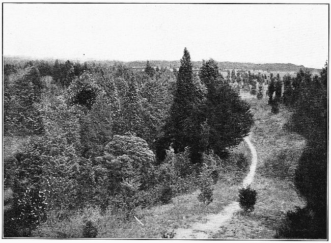 As the boldest soldiers in the fray held oftenest the foremost ramparts and felt themselves fortunate in their position, so I think it must be with those veterans who rest nearest the brow of the hill, where it seems as if they could look forth over miles of beautiful forests to the blue hills which are other ramparts on the horizon. Here of an early morning of this misty May they might well think they saw gray troopers form and advance in battalions that sweep down from the hills to eastward and charge over the treetops of the vale[193] below. Through the distance they can hear the bugle calls of thrushes, and with trained ears thus know in what formation the advance will be made and when. Well may they feel the old-time thrill of desperate conflict as the advance sweeps up their hill and the misty gray legions swarm over it until the fight must need be hand to hand. Yet rarely does a day pass without final victory for the blue. The misty legions fall back and vanish before the flashing cavalry of the sun and the blue battalions of the clear sky swarm forth and drive the enemy in full retreat before them. Thus to them again out of the shades may come Gettysburg, or Antietam, or Port Hudson.
