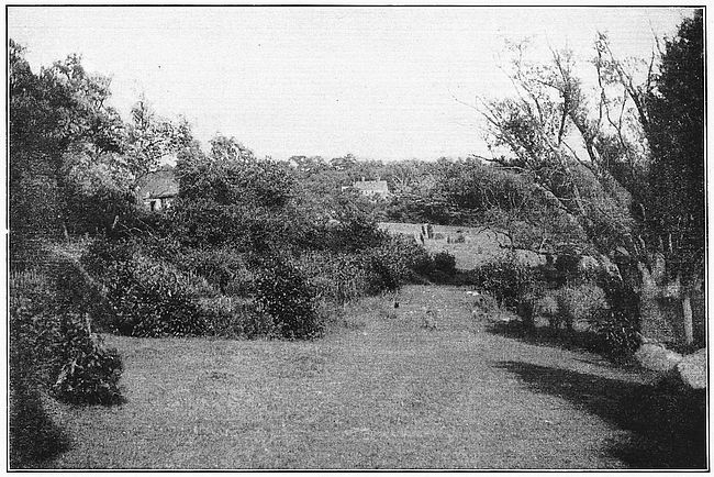 You may come to Black Mount with its panoramic view of the Webster farm, the surrounding pastures and marshes and the little Pilgrim cemetery where he lies buried, from either the Marshfield railway station or that of Green Harbor, both a mile or more away by road. A better route lay for me through the woods by paths flecked with sunlight and dappled with shadow, paths which the Pilgrims’ descendants first sought out and which are as fair to-day to our feet as they were to theirs. One can easily fancy Peregrine and his wife picking berries along here on days when the farm work allowed them freedom, the children frolicking about with them and eating or spilling half they picked, as the children do on these hills now. Voices and laughter rang through the woods as I passed, and there is small blame to the pickers if they do eat the berries as[4] fast as they pick them. They never taste quite so good as on this direct route from producer to consumer. Along this path you may have your choice of varieties as you go, from the pale blue ones that grow so very near the earth on their tiny bushes that they seem the salt of it, giving the day its zest, through the low-bush-blacks, crisp with seeds and aromatic in flavor as if smoked with the incense of the sweet-fern, to those other black ones that grow on the high bushes and rightfully take the name of huckleberry. The soil of these sandy hills may be thin and not worth farming, but it produces fruit whose quality puts to shame the product of well-cultivated gardens. The good bishop of England who once said, “Doubtless God could have produced a better berry than the strawberry, but doubtless He never did,” never ate blueberries from the bush in a New England pasture.
