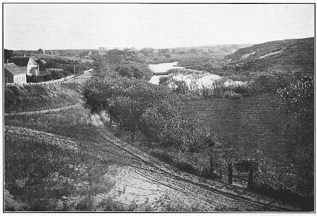 The trailing arbutus is peculiarly the flower of Plymouth. Not that it grows there alone, indeed within easy reach of the landing place of the Pilgrims it is not easy now to find it. Once, no doubt, it blossomed about the feet of the pioneers, sending up its fragrance to them as they trod sturdily along their first street and through their new-found fields that first spring after their arrival. My, but their hearts must have been homesick for the English May they had left behind! and in memory of the pink and white of the hawthorn hedges they called this pink and white flower which peered from the oval-leaved vines trailed about their feet, mayflower. It surely must have grown on the slopes of Burial Hill, down toward Town Brook, but now one will look in vain for it[139] there. I found my first blossom of the year by following the brook up to its headwaters in Billington Sea. The brook itself is greatly changed since Bradford’s day. Its waters are now held back by dams where it winds through the sand hills, and one mill after another sits by the side of the ponds thus formed. Yet the “sea” itself must be much the same in itself and its surroundings as it was in Billington’s time. Nor do I wholly believe the legend which has it that Billington thought it was a sea in very truth. It is too obviously a pond to have deceived even this unsophisticated wanderer. It covers but a little over three hundred acres including its islands and winding coves.