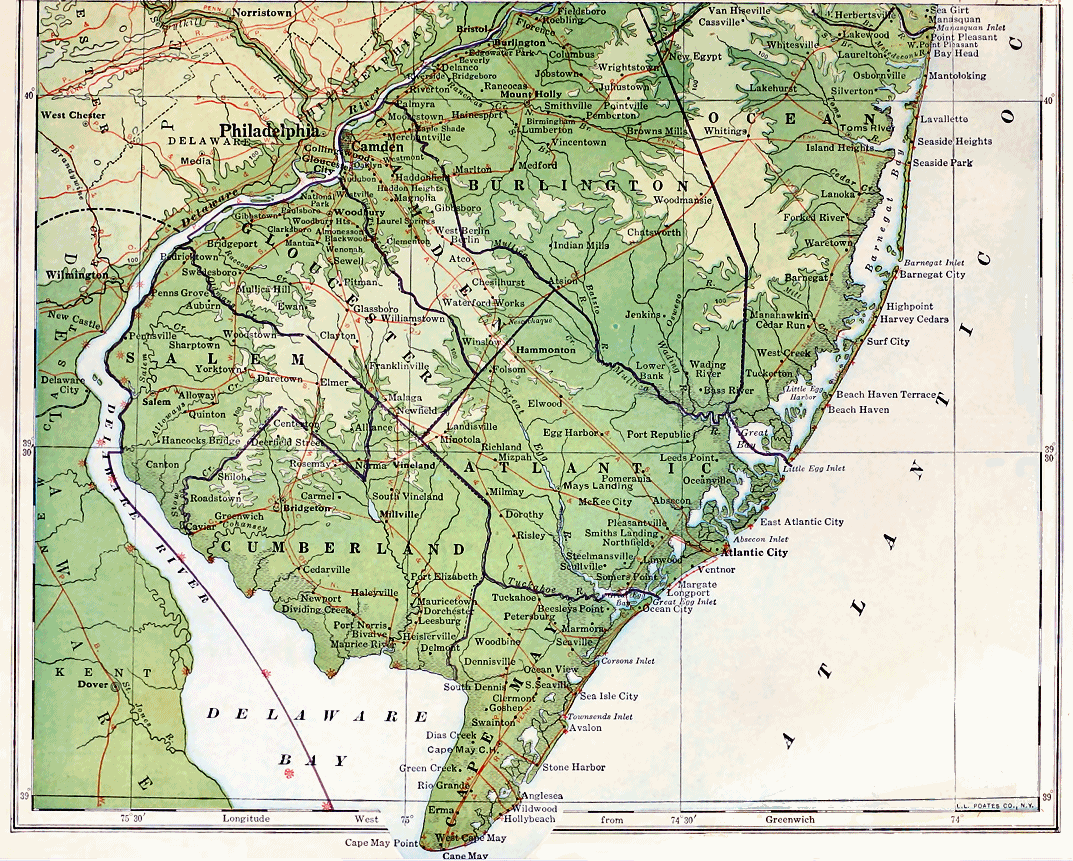 Towns near Delaware Bay.—Farther south on the outskirts of the Philadelphia Metropolitan District are the very active business and industrial center, Salem, settled by the Quakers in 1675, Bridgeton, Vineland, and Millville.