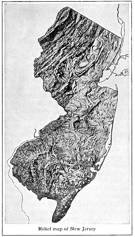 Between the Watchung Mountains on the east and south and the Highlands on the northwest is a broad, flat basin, which is drained by the Passaic River. Before the Glacial Period the Passaic River did not flow from this basin through the mountains at Little Falls and Paterson, as it does now. This area was then drained by a stream which crossed the Watchung Mountains near Summit and Millburn and flowed southeast into the sea. During the Glacial Period most of this basin was covered by the ice sheet. As the ice receded, this gap in the Watchung Mountains was filled with glacial drift and there was formed a large lake, which the geologists call Lake Passaic and which was drained for a long time by a stream which flowed southwest through the hills near Liberty Corner into the Raritan River. As the ice sheet receded still farther -ix- north, the gaps through the mountains at Little Falls and Paterson were exposed. As these gaps are lower than the older outlets, the water of Lake Passaic escaped through them over the present course of the Passaic River to Newark Bay, and the lake disappeared. These changes in the drainage of the Passaic basin explain the presence of much swampy land in this section.