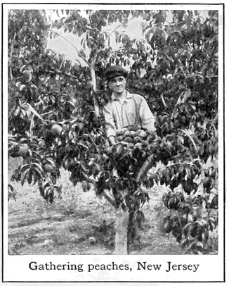 Fruits of all kinds are raised in all parts of the state. In the northwestern section of the state, in parts of Warren, Morris, and Hunterdon counties, peaches are grown in great quantities on the stony soil of the glacial drift which is not favorable to general farming. In the western section apples and pears are abundant. While strawberries, blackberries, raspberries, and grapes are grown in all parts of the state, they are grown in special abundance in the southern part of the state. In this section establishments for the bottling of unfermented grape juice have grown up. Huckleberries are common in the wooded sections of the northern and southern parts of the state. Cranberry bogs are found in Atlantic, Burlington, and Ocean counties.