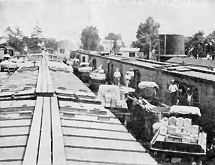 In these towns the glass factories are extensive and make all kinds of glass articles. In Bridgeton and Millville many persons are employed in the mining and shipping of glass sand. Molding sand is also a product. In and surrounding these towns are large areas of farm land devoted to the raising of all kinds of vegetables, berries, and tree fruits for the markets. Great quantities of these are preserved in the many large canning factories which are located in them. Vineland produces much bottled grape juice. These towns have also diversified industries of other kinds.