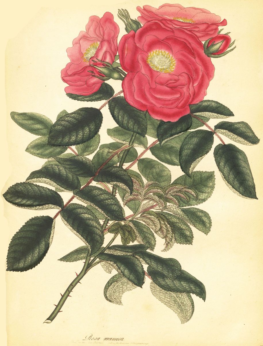 This very desirable Rose was introduced from France under the title of La Rose de quatre Saisons, and which we conceive to be an appropriate term, as it refers with some degree of accuracy to the frequency of its flowering. For although it is not in flower all the year, yet it is found blooming in every season; a circumstance of rare occurrence, and (the Chinese or Indian Rose excepted) only to be found in the species called the Monthly Rose, from which analogy alone, the Rose of the four Seasons has been by many supposed to be only the Clustered-flowered Monthly under a new name; but to this it has not the slightest affinity except in its foliage, being in every other respect most particularly distinct. It is also a scarcer rose, and by no means so well known as it deserves to be.