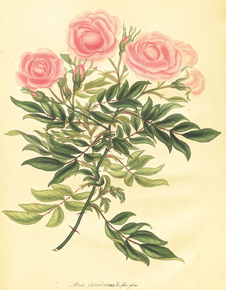 In this double-flowered variety of the Great Burnet-leaved Carolina Rose there is a variation much more powerful than many of the new species of the present day could lay claim to, as nearly one half of the plant from which our figure was made, in the garden of the Hon. W. Irby, was so different both in shape and size, that they might easily pass for distinct species; and had we not found them both on one plant, we should have been inclined to consider them as such. A separate figure will therefore be given of such a strong-marked difference of character, that will probably illustrate the distinction actually existing between varieties and species.{92}