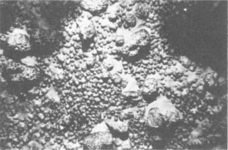 Nodules such as these containing manganese cover millions of undersea acres on the ocean floor. Many nodules are rich in nickel, cobalt, zirconium, and copper. Metallurgists are seeking ways to recover the metals from these deposits.