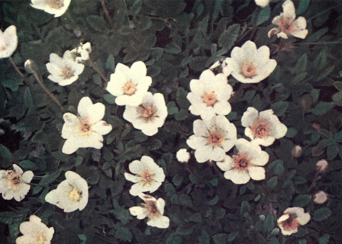 One of the principal characteristics of Alpine plants is the extensive development of the rootstock and underground stem. This is required to protect them against the strong winds, and to extract as large a supply of water and nourishment as possible from the frequently scanty soil. But there is another consideration of at any rate equal importance. During at least half of the year owing to the white coverlet of snow, all activity in the Alpine plant world ceases so that the production of flowers and seeds, indeed all the vital processes of the plants must be crowded into the few months when the ground is clear. Crocuses and Snowbells and other plants are found blooming at the very edge of the snow, therefore everything must be ready for immediate flower production directly the snow[xvi] melts. For this to take place a reserve store of nourishment is essential, and accordingly Alpine plants are furnished with thick underground stems and fleshy roots where the food substances can be stored.
