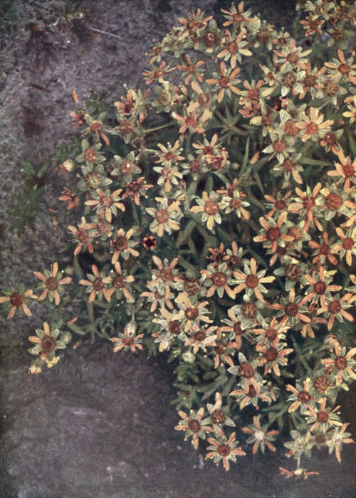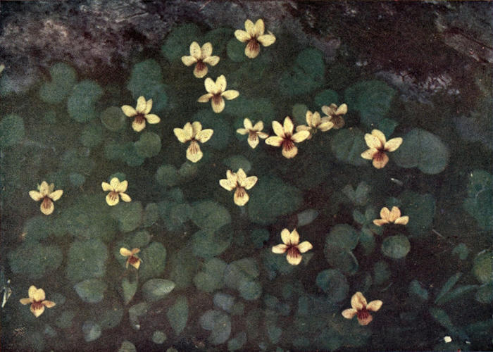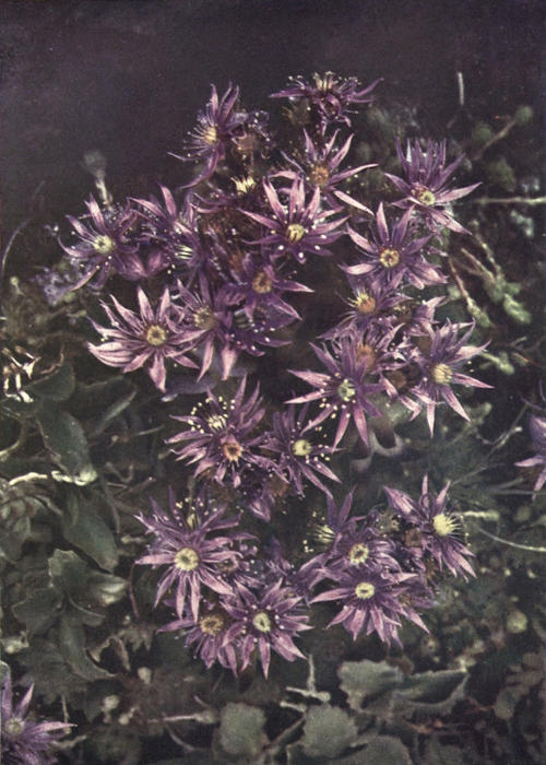 The coloured plates of Alpine plants, which are the special feature of this book, are all reproduced from colour photographs taken directly from nature. The plants were all photographed exactly as they were found, with two exceptions, in the immediate neighbourhood of Rosenlaui in the Bernese Oberland during the month of July 1909; so that the pictures are true portraits of the flowers “at home.”