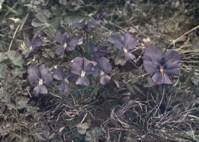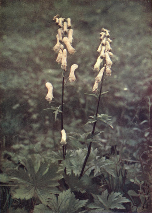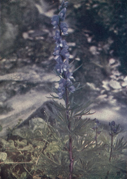 While many of the characteristics of Alpine flowers are to be explained as a direct result of the conditions of life at high altitudes, it is probable that the process of natural selection has also had a good deal to do with their production. One of the principal objects of the life of a flowering plant is to produce seeds. It has been shown that, generally speaking, more numerous and healthier seeds are produced when the seed-producing apparatus of a flower is fertilised by pollen from the stamens of a flower of a different plant. Hence arrangements have to be made by plants for the conveyance of their pollen from flower to flower. This is sometimes effected by the wind, but much pollen is lost, so that this is manifestly a very wasteful method. Plants have therefore adopted the more economical plan of getting insect visitors to do this carrying business for them. The bright colours and sweet scents are to attract insects to the flower, and honey is provided for their entertainment there. It is generally believed that the total number of insect visitors in the Alps is less than in the plains, and therefore the competition for their services being more severe, greater attractions in the form of brighter coloured flowers and more abundant honey have to be provided for them. But, unfortunately, the direct observations of H. Müller do not confirm this view. There can be[xxi] no question, however, that the relative proportion of the several varieties of insects in the Alps is very different from that in the plains. There are comparatively few flies, bees, and wasps, but numerous humble-bees, butterflies, and moths in the mountain regions. These insects have longer tongues and prefer to visit flowers of a more complicated structure, where the honey cannot be reached by their shorter tongued relatives. Flowers of this sort with less easily obtained honey are more often of a red or blue or pink colour, and more rarely of a yellow tint. Not a few Alpine flowers like the Aconites (Plates 3 and 4) are entirely dependent on humble-bees for their fertilisation, and an even larger number, such as the Long-Spurred Pansy (Plate 5), and several of the Gentians are exclusively visited by butterflies and moths. Müller even goes so far as to suggest that not a few of the Alpine flowers, especially those of a pale crimson colour and with a clove-like smell, such as the Pinks (Plate 9), have been evolved in the Alps under the influence of butterflies and moths. In spite of this it is curious to note that the number of flowers that are habitually self-fertilised is greater in the Alps than in the plains. But when it is explained that these are for the most part of the same type of flower that is pollinated by flies, bees, and wasps in lowland districts the apparent anomaly becomes clear.
