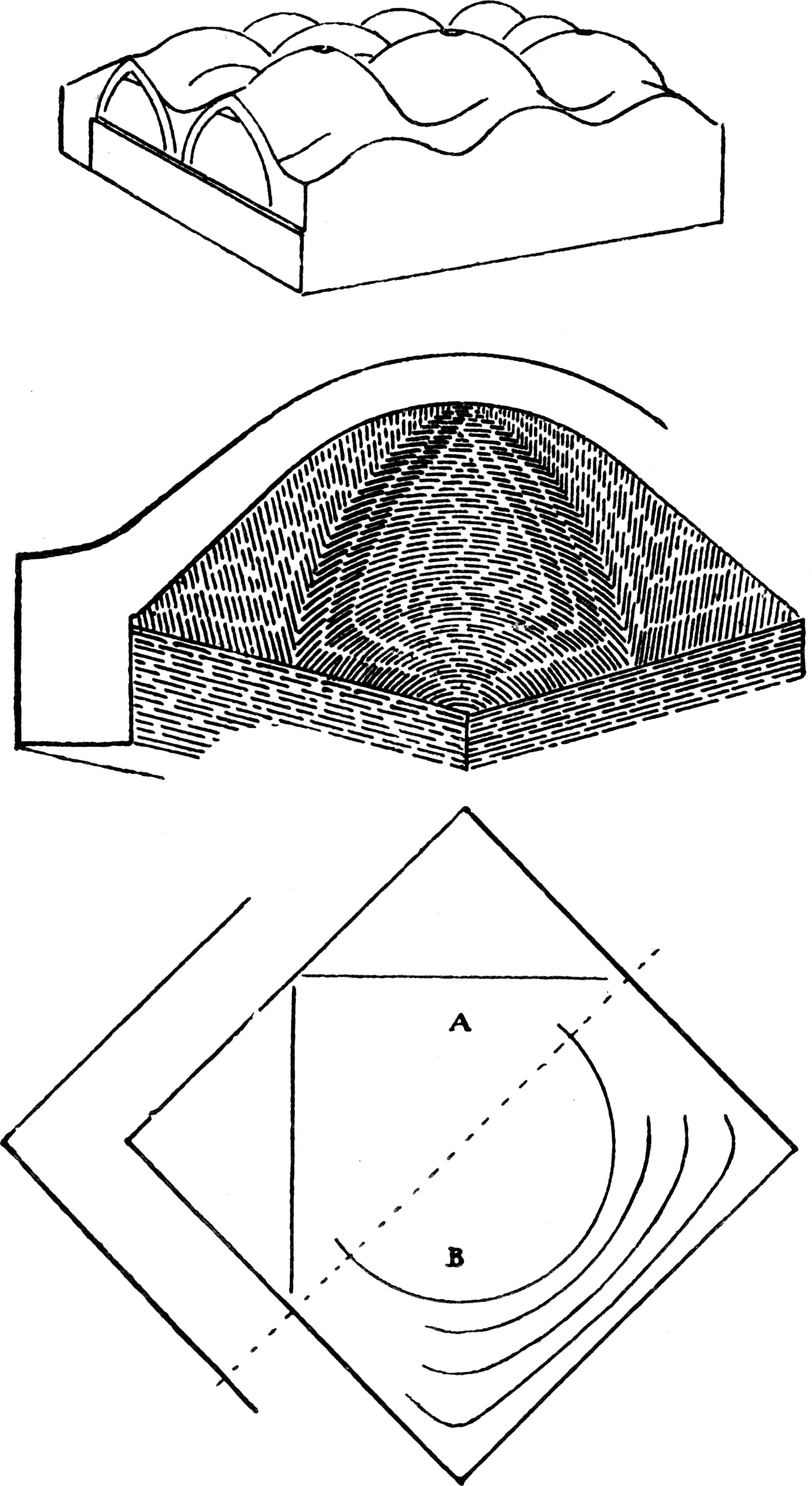 CHAPTER X. § 1. Byzantine Origins. § 2. The Builders of the Church. § 3. Original Form of the Church: Dome and N. and S. Arches, Atrium, N.W. and S.W. Angles, Baptistery and Loggia. § 4. Structural System. Arch Forms. Vaulting. Dome Construction. Chainage and Walling. Mortar and Cement. page 198