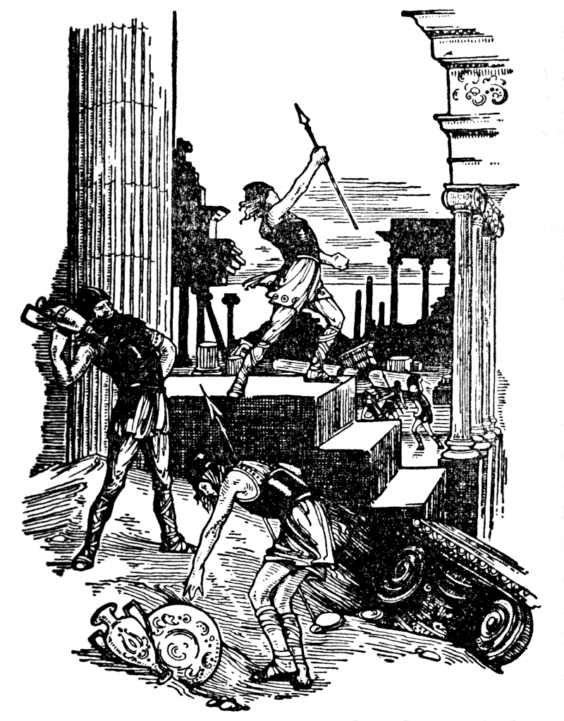 Once round the stadium had the racers been, when suddenly a great cry arose from the spectators. Phidolas had been thrown! For a second he lay on the ground, till the umpires, rushing forward, dragged him out of the way of thundering hoofs. Then a mighty clamour arose....