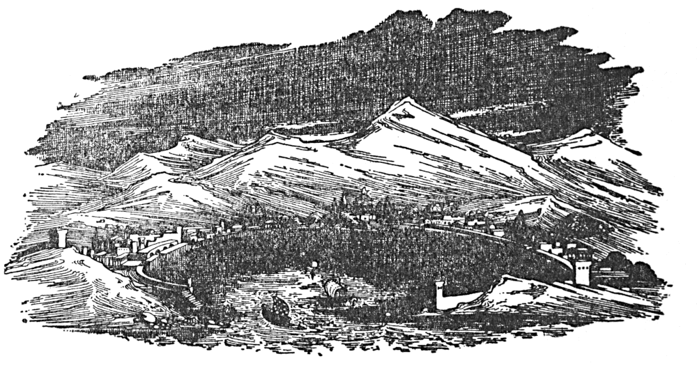 Almost before he had finished speaking, the children found themselves back again in the huge “circus-ring” with its background of mountains! But now it was no longer empty. An enormous multitude of people filled the seats surrounding the hollow space, and from the crowd there rose a murmur like the hum of thousands of bees.