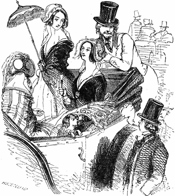 There is a species of Gent who, moving only in a third or fourth rate sphere, goes to a party in a white cravat and turned up wristbands, and carries his hat into the room because he had heard that Gentlemen do so. He is generally an immense card. We chanced to stand next to a specimen of this kind, one 89evening, in a quadrille, and the only remark we heard him make was inquiring of his partner, after two or three false starts, whether she preferred dancing on a carpet or the bare 90boards: to which the young lady replied, having looked down to see what the floor was (that she might not “put her foot in it,” figuratively speaking), that she preferred a carpet, she thought: and this was the beginning and end of the conversation.