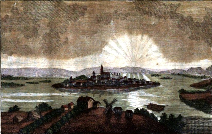 Ma poche città intanto sono in Europa situate così bene come Stockholm, tanto per le occorrenze del commercio, quanto pel diletto che reca la varietà degli oggetti, che i suoi contorni presentano. Essa giace sopra sette, od otto isole, circondate tutte, quali da acque dolci discendenti dal lago Malar, quali da acque salse refluenti dal mare. Quasi tutte hanno il loro nome particolare; ed è famosa nella storia quella di Blasiiholmen, oggi attaccata al continente, per l’orribil fatto accaduto nel 1386 sotto il regno di Alberto. Due fazioni atrocemente perseguitavansi allora, quella de’ Cappelli, e quella delle Berrette; e la prima fece abbruciar vivi dugento patrioti svedesi della seconda!! — L’aspetto di Stockholm è superbo, spezialmente mirandosi dal ponte detto del Nord. Tutto ad un colpo si presenta allo sguardo una massa straordinaria di campanili, di palazzi, di rupi, d’alberi, di laghi, di canali, coronata poi dal castello che domina su tutta la città; e tutta la città da quel ponte si discopre quanto è lunga e larga, e tutta la facciata pur si vede minutamente di quel castello, la cui architettura è [13] semplice, nobile, maestosa, senza nissuno di quegl’inutili ornamenti, che sfigurano tante grandiose fabbriche simili. La immaginazione attonita a tale prospettiva può appena sostenere siffatto incanto; e mentre è sì vivamente colpita dall’immenso quadro, che ha d’innanzi, ove il lusso, le arti, il commercio, l’industria pajono essersi accordati insieme per sorprendere i sensi, il fracasso delle onde che si precipitano attraverso delle arcate del ponte suddetto, imprime a questo spettacolo un certo carattere selvaggio, che toglie ogni paragone.