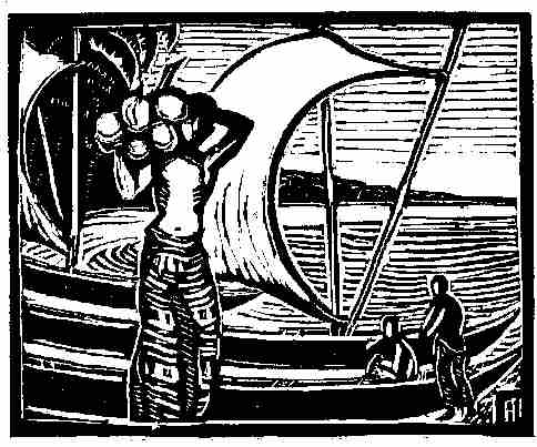 Dans ces îles que gouverne une femme, on cultive le cocotier (p. 6). Ces îles sont distantes l'une de l'autre de deux, trois ou quatre parasanges. Elles sont toutes habitées et on y cultive le cocotier. La richesse des habitants est constituée par des cauris; leur reine amasse de grandes quantités de ces cauris dans les dépôts royaux. On dit qu'il n'existe pas de peuple plus industrieux que[Pg 32] ces insulaires, au point qu'ils tissent des tuniques d'une seule pièce, avec les deux manches, les deux parements du collet et l'ouverture de la poitrine. Ils construisent des navires, des maisons et exécutent toutes sortes de travaux avec un art consommé.