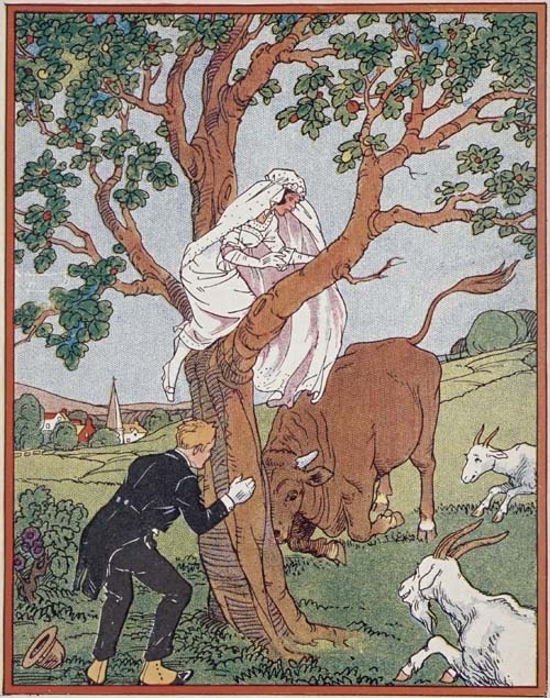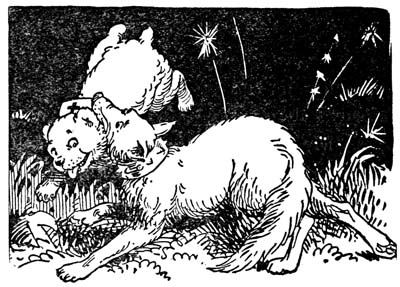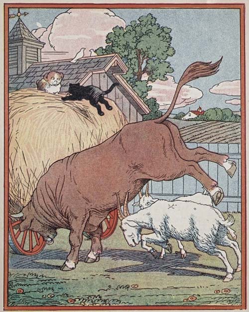 [13]“Never you fear, Nannie,” said Stubby. “With my nose to scent you out and Billy’s horns to butt both the dog and farmer into next week, we can’t lose you. No, dearie; don’t be afraid! Your dear husband isn’t too old yet to rescue his little wife from dozens of farmers and their dogs.”