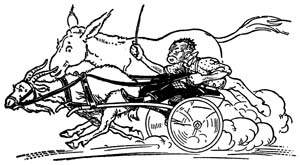“Oh! What shall I do?” and Billy had dropped his head in disappointment and was paying no attention to the monkey on his back who kept on dancing and hitting his head with the little tambourine he had in his hand. All of a sudden he heard a great clattering of wheels and tooting of horns coming down a side street and just as his part of the procession got to the corner it parted so the fire engine and hook-and-ladder could go across the street.
