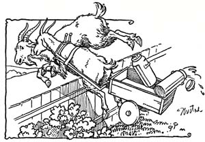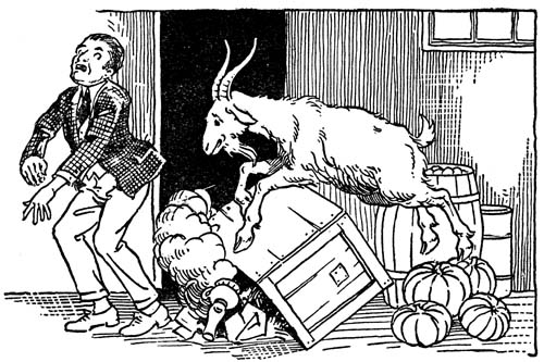 This train was the fast night express and made but one stop between Duluth and Minneapolis, so when the train was out of the suburbs and rolling along through the quiet country, the mailman turned the lights down low and threw himself on a cot at the side of the car and was soon fast asleep. He never awoke until the train whistled for St. Paul. Then he was up and on his feet and ready to open the door the minute the train stopped. As he was removing the inner bar that fastened the door, he thought he heard a noise behind him, but he did not bother to look around to see what it was. Imagine his surprise when the door slipped open to see two big white goats leap past him and run down the platform and disappear in the crowd!