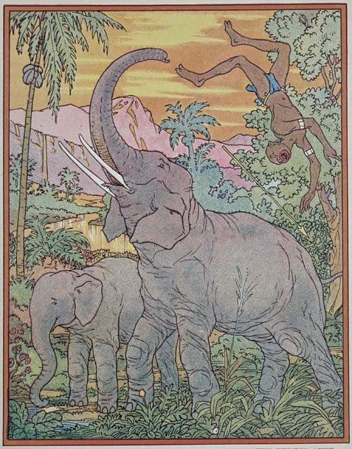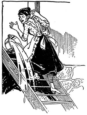 [180]The poor little monkey on Billy’s back was nearly scared to death so when he saw the ladders over his head he jumped from the little saddle on Billy’s back up on them. Luck was with him for the sudden jerk on the rope untied the loose knot and he found himself free, much to his delight as well as Billy’s.