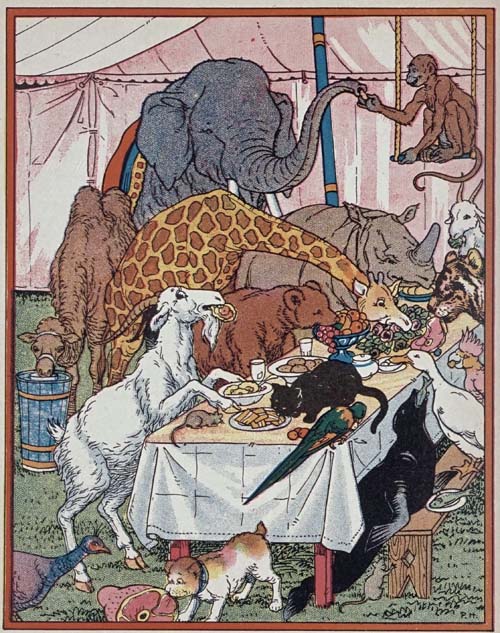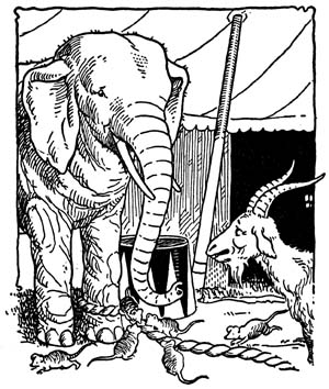 THAT night after the performance the circus broke camp and the friends were separated, the elephant, camel, monkey and parrot going to Bismarck while the moose, zebra, giraffe and sacred bull went to Duluth. But this was not the worst division that was made. Billy was to be sent to Duluth and Stubby and Button to Bismarck. Now here was an unforeseen catastrophe and the circus people, having observed the close companionship of the four, took precaution to lock Billy and Nannie in a cage by themselves and Stubby and Button in another.