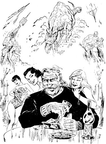 Annellica sighed. "That belly of his! Life is one continuous smorgasbord. Excuse me, Mr. Frost." She arose cautiously against the double gravity, but even under these circumstances not a line of her firm curves drooped excessively. She was, I guessed, early thirtyish, judging from her mature manner, but she was firm and resilient as a girl of 18.