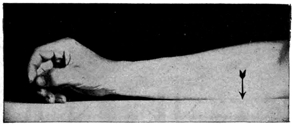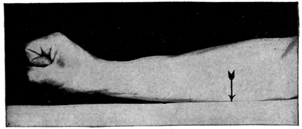 Place your arm on the desk and close the fingers of the right hand tightly. (Number nine.) See how far you can move the hand forward and backward without slipping the sleeve or without any motion of the wrist or fingers.