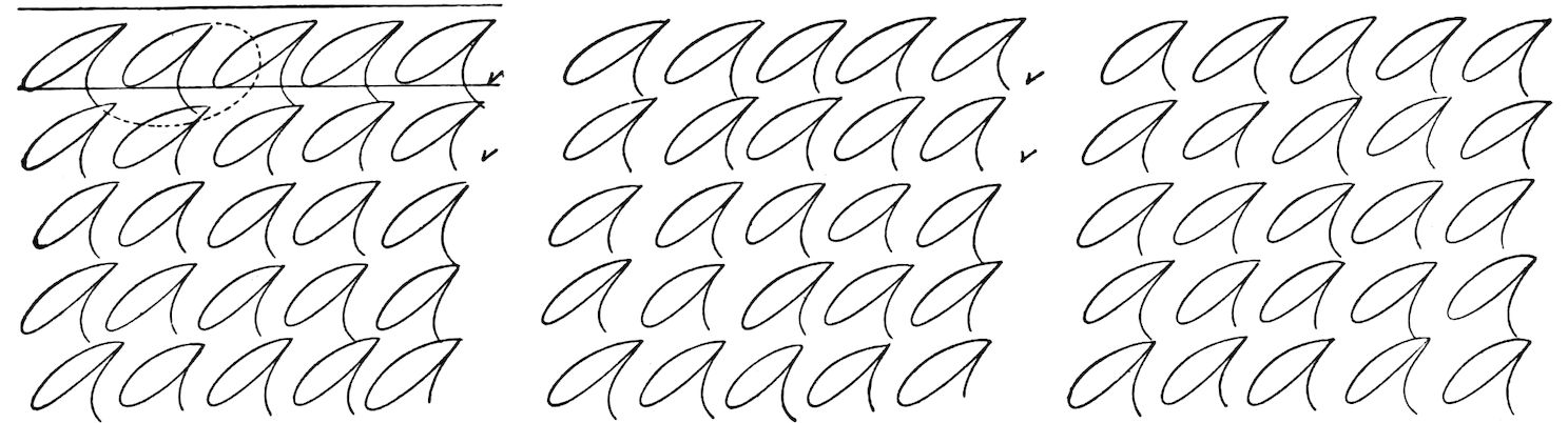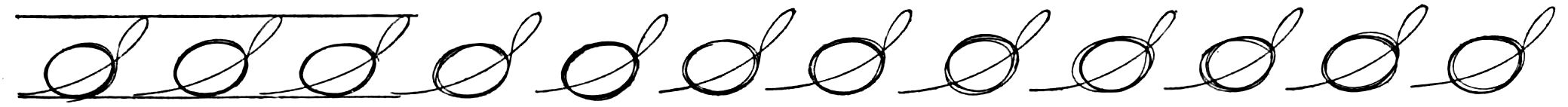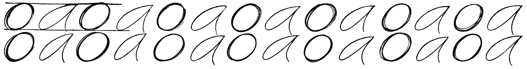 Practice this compact oval as a beginning drill. Make it between two ruled lines, carry the pen lightly and see how many you can make in one row, with one dip of ink.