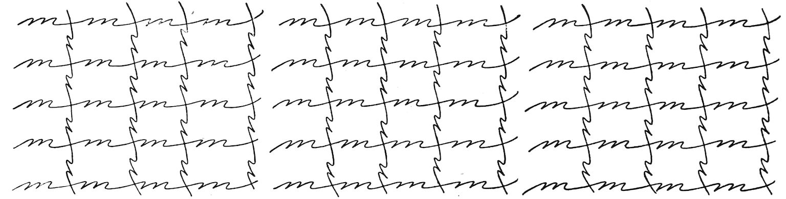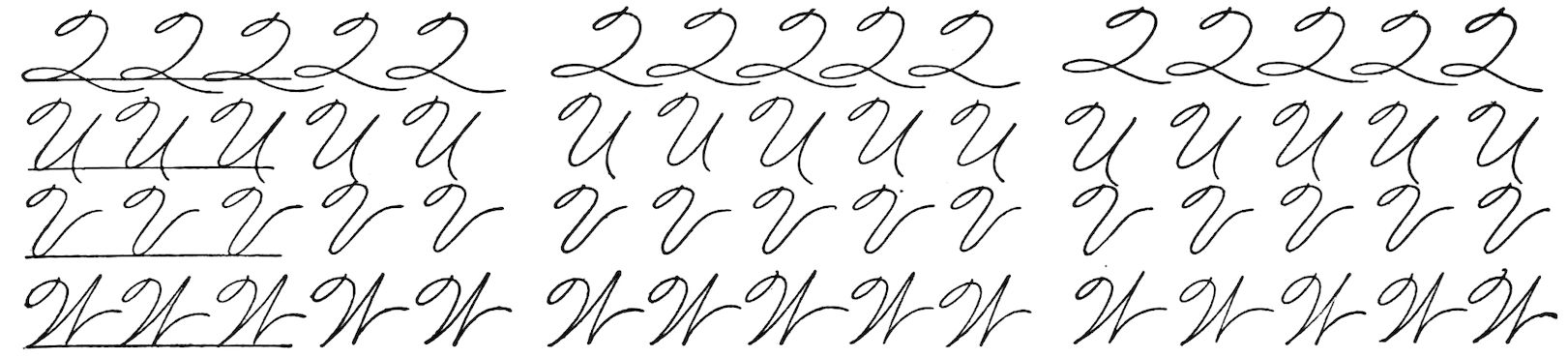 Work faithfully on every letter. Repeat the forms over and over until decided improvement can be seen. Make frequent comparisons. Study length, breadth, curves, and connections closely.