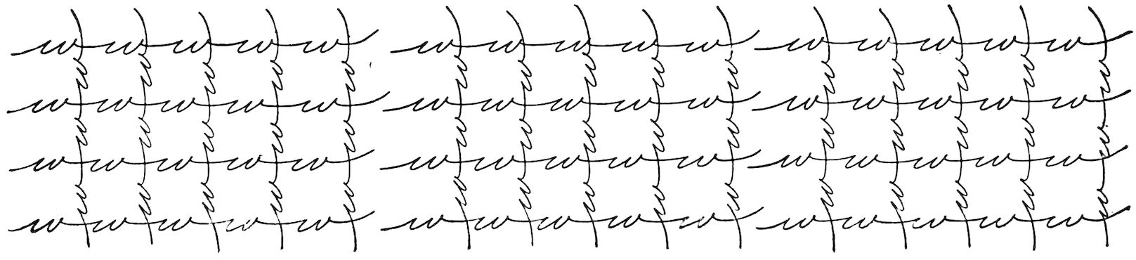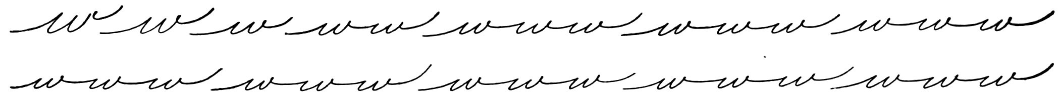 In making the first part there should be a stop at the base line. This will aid very much in the construction of the last part of the letter. The last line in the letter, it will be noticed, is shorter than the two center strokes. It is unlikely that students who fail to study its construction closely will learn to make a good capital W. The rate should be between forty and fifty letters to a minute. Do not neglect the word practice.