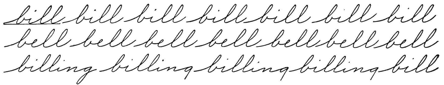 When pupils have learned good posture, correct penholding, and how to use muscular movement in making a good two-space compact oval, they are ready to begin to learn how to write well. Too many pupils think they have really learned how to write well when they are able to make some of the very simple drills in correct posture at the right speed and in correct rhythm. That is really the starting-point toward good penmanship, and should be followed immediately by the practice of words, and, indeed, by the use of the movement in all written work.