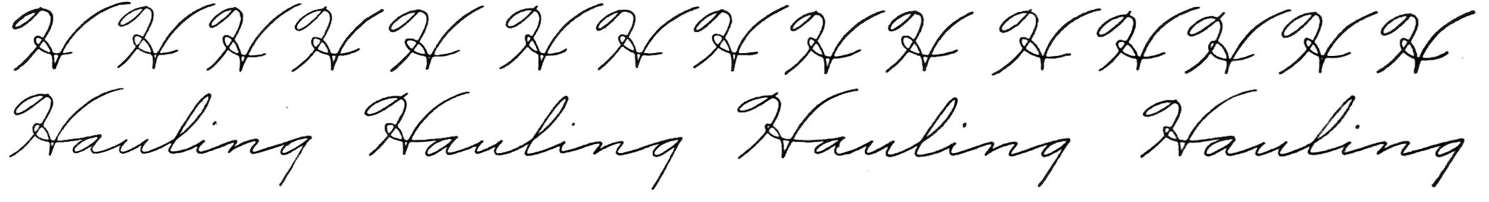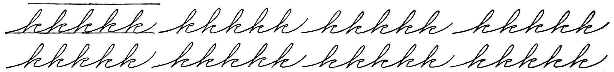 This affords a good drill and a good test of accuracy in applying movement. The last downward stroke in capital H is a left curve, is it not? Study the direction of the pen in making it, and then strike boldly. This will be a good drill to practice frequently at the beginning of a lesson.