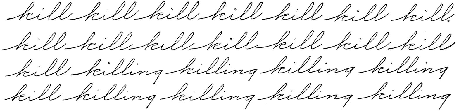 There is no value in any penmanship drill ever invented unless it is practiced with correct positions of body, arms, 5fingers, penholders, paper, and with exactly the right movement, and at exactly the right rate of speed.