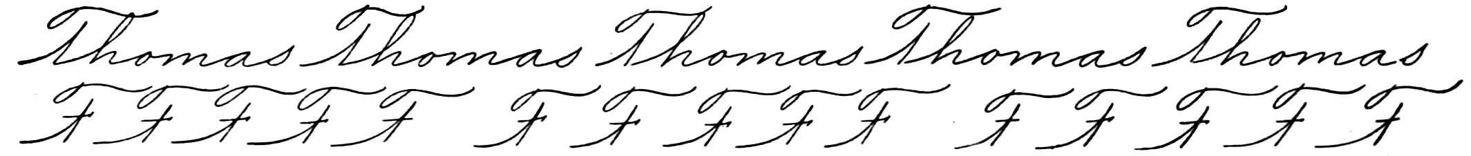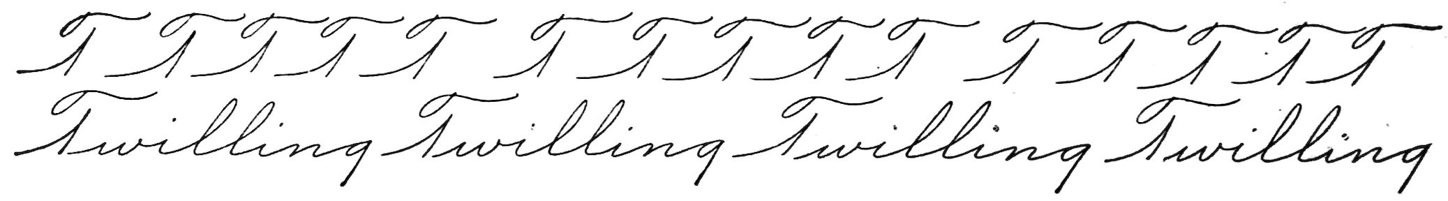 The first part of capital T should be no more than two-thirds the height of the entire letter. Give attention to the abrupt stop on the base line in the first part of the letter. Carry the last part up and over the first part in a graceful curve. Practice the word as well as the detached capital.