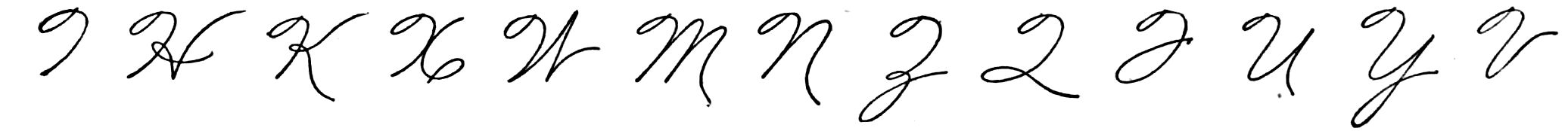 Some authors make the loop of j and z shorter below the base than small y and g, but we make no distinction. The j begins like a small i and ends with a loop. Small z should receive careful attention.