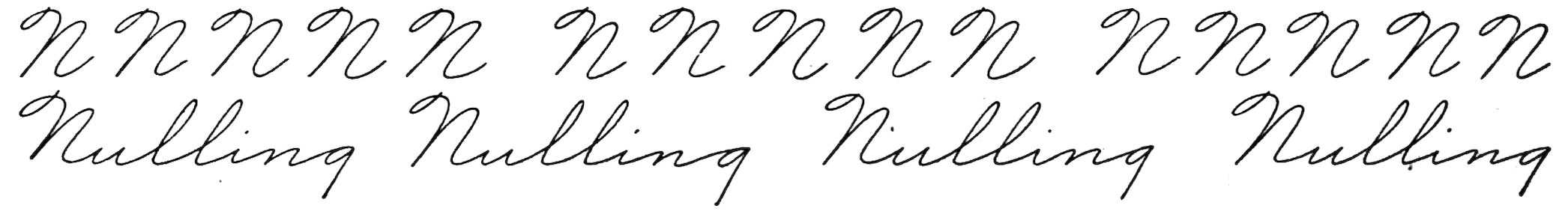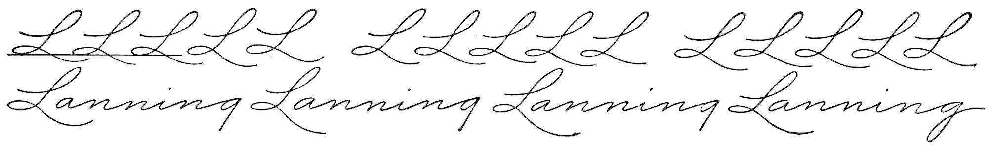 Compare your work with the copy in reference to these questions. Practice speed, sixty letters to the minute. Write the word “Lanning” with a very light motion at a speed not less than twelve to the minute.