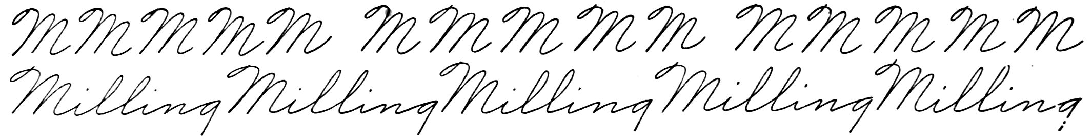 Do not overlook the proportions of capital M. It should fill a square. Practice speed for M, about forty to the minute, and of the word “Milling”, fourteen words a minute; a higher rate of speed may be applied by some pupils.