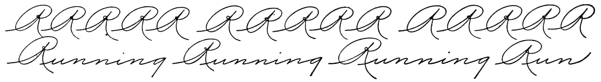 Write line after line of the word “Running” with a light, quick motion, and compare with the copy frequently. Twelve to fourteen words should be written to the minute.