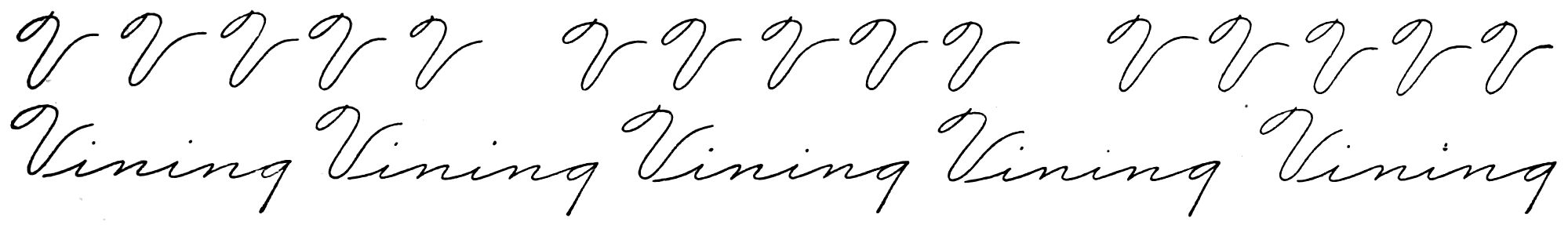 An otherwise good capital V will be spoiled if the finishing line is too long. Notice its length. Study and practice should go hand in hand. Do not neglect either.