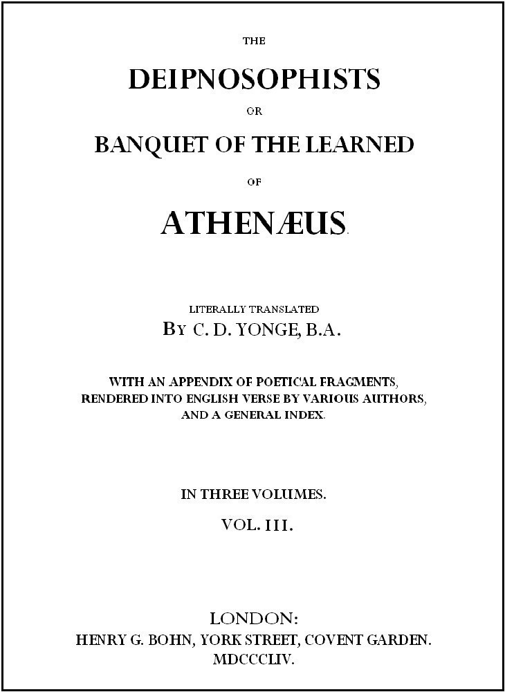 Title: The Deipnosophists; or, Banquet of the Learned of Athenæus, Vol. 3 (of 3)