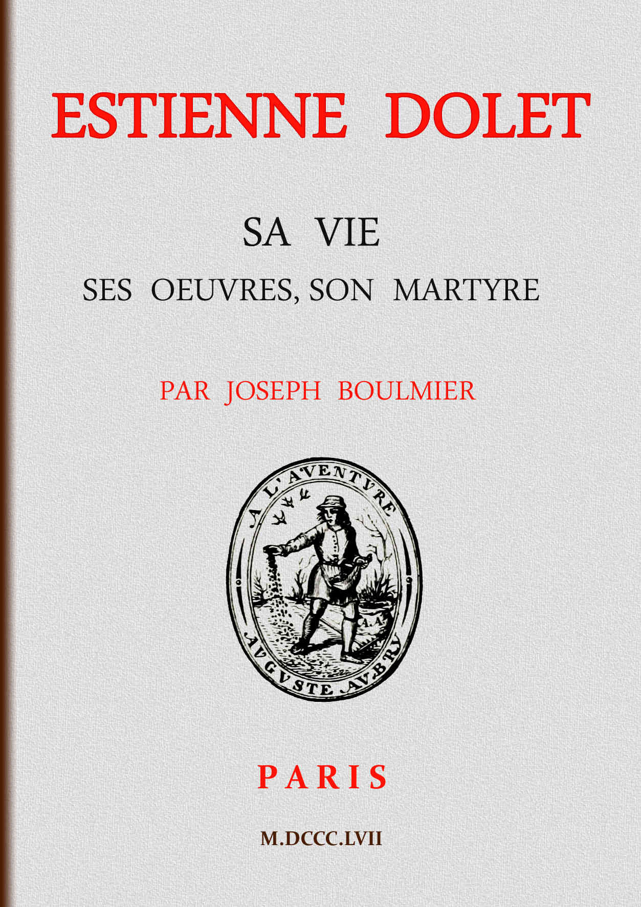 Cet homme a nom Estienne Dolet, d’Orléans, Stephanus Doletus Aurelius; et il appartient à l’immortelle phalange du SEIZIÈME SIÈCLE.