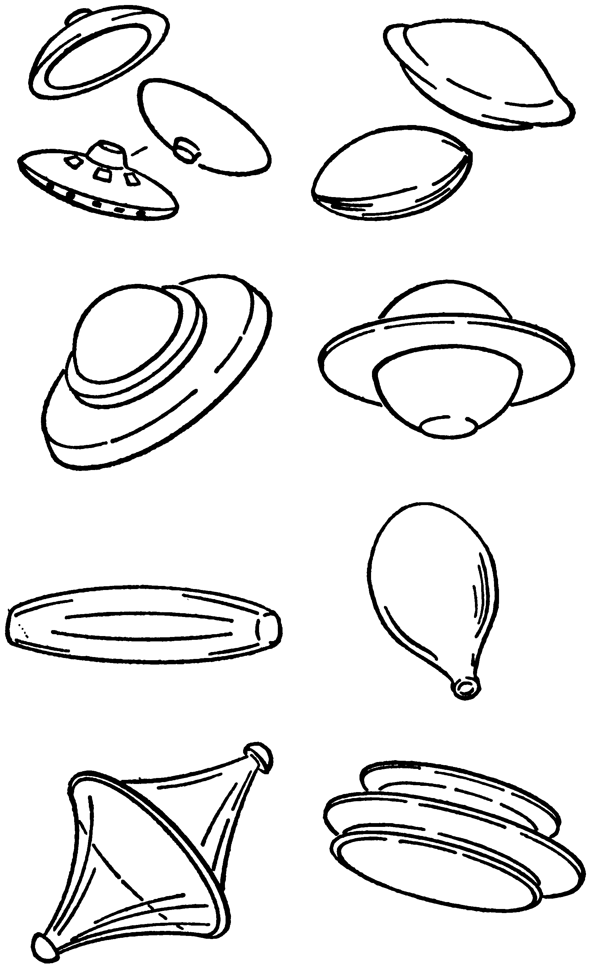 The published reports comprise a heterogeneous collection of facts, fiction, and guesses. The investigator must first separate and discard accounts that are obvious hoaxes or delusions. There are many of these. The remaining material he divides into two classes. The first includes statements made by competent, careful witnesses, describing what they have seen and heard—for example, “I saw a brilliant light moving swiftly without sound.” The second class includes statements of opinion or belief about the thing seen—for example, “The strange light obviously was controlled by intelligence.” Putting aside this second class of material for the time being, he7 looks at the information in the first and immediately faces an awkward conclusion: apparently no “typical” flying saucer exists.
