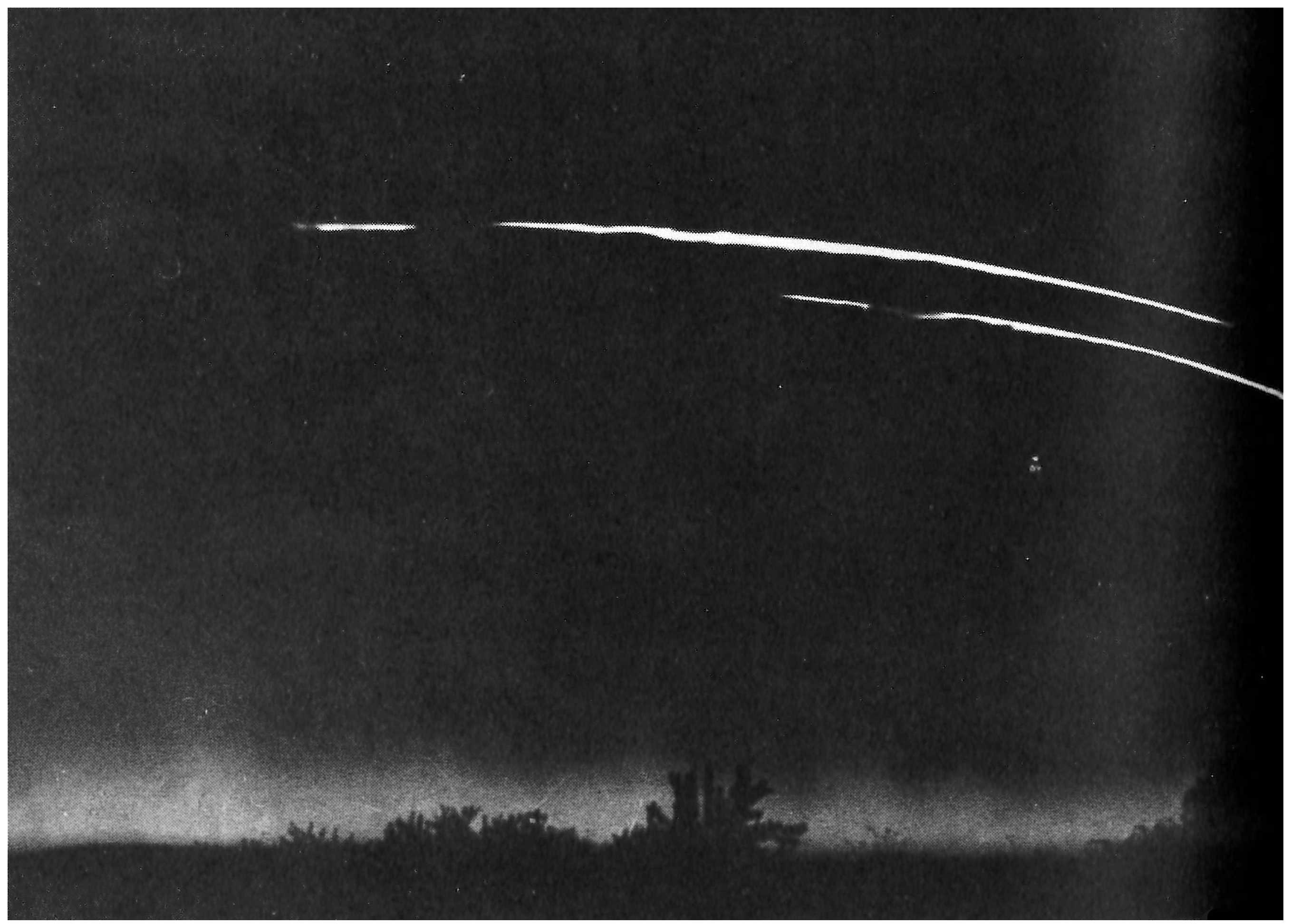 In a later study of the evidence, the Air Force experts recognized this incident as one of false targets on radar (see Chapter VIII).6 The radar phantoms may have been caused by beacon returns triggered by another radar; by variations in the atmosphere; or, if “ducting” conditions existed, by reflections from objects that were far beyond the normal range of the radar set. The blue-white flashes had no relation to the radar returns and were probably meteors; the date corresponded with the beginning of the annual Geminid shower (see Chapter V).