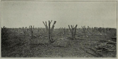Hardpan.—Compacted substrata in the soil, whether they be hard clay layers or cemented layers of silicious, ferruginous or calcareous origin, are objectionable. They not only prevent the roots from foraging to a considerable depth as they normally tend to do, but they prevent proper drainage and aeration of the soil. If such layers are[12] comparatively thin, that is, not more that two or three feet thick at the most, they may be shattered with dynamite so as to allow the moisture, air and roots to penetrate to the better soil below. Hardpan, therefore, should be avoided where it is too thick to be broken up or where it is not underlaid by desirable soil.